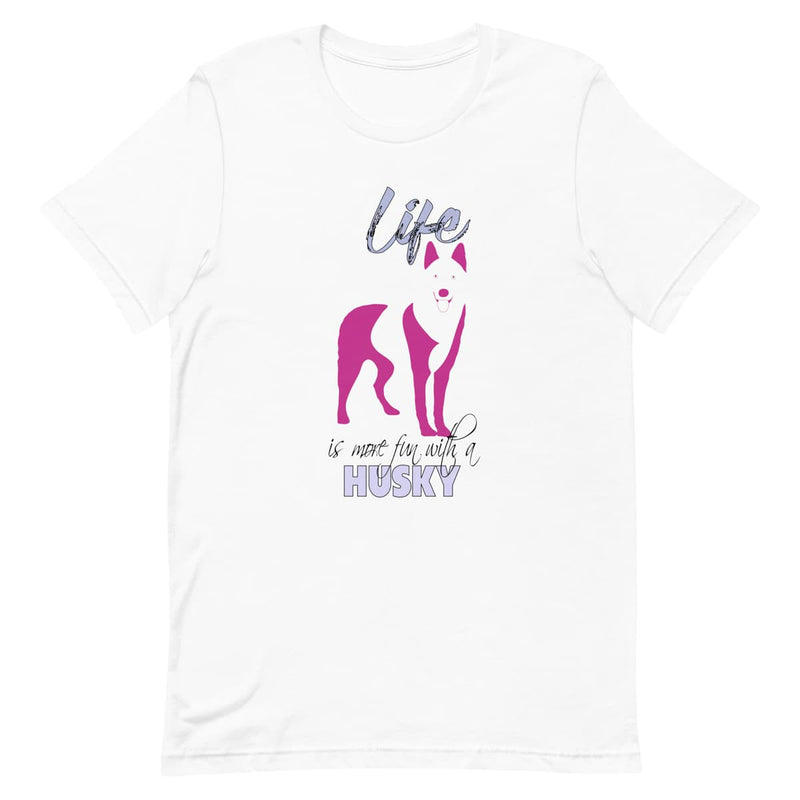 Celebrate your Husky pride with this unisex graphic tee! Made from 100% soft cotton, this short-sleeve crew neck t-shirt features a bold Husky silhouette with the playful quote 'Life is more fun with a Husky' across the chest. Breathable, comfy, and perfect for everyday wear—whether you're relaxing at home, heading out for a casual day, or walking your pup in the park
